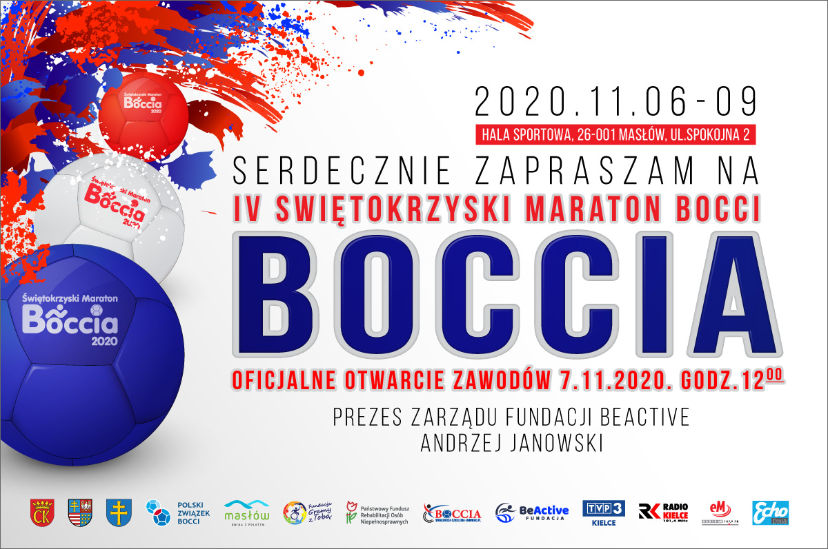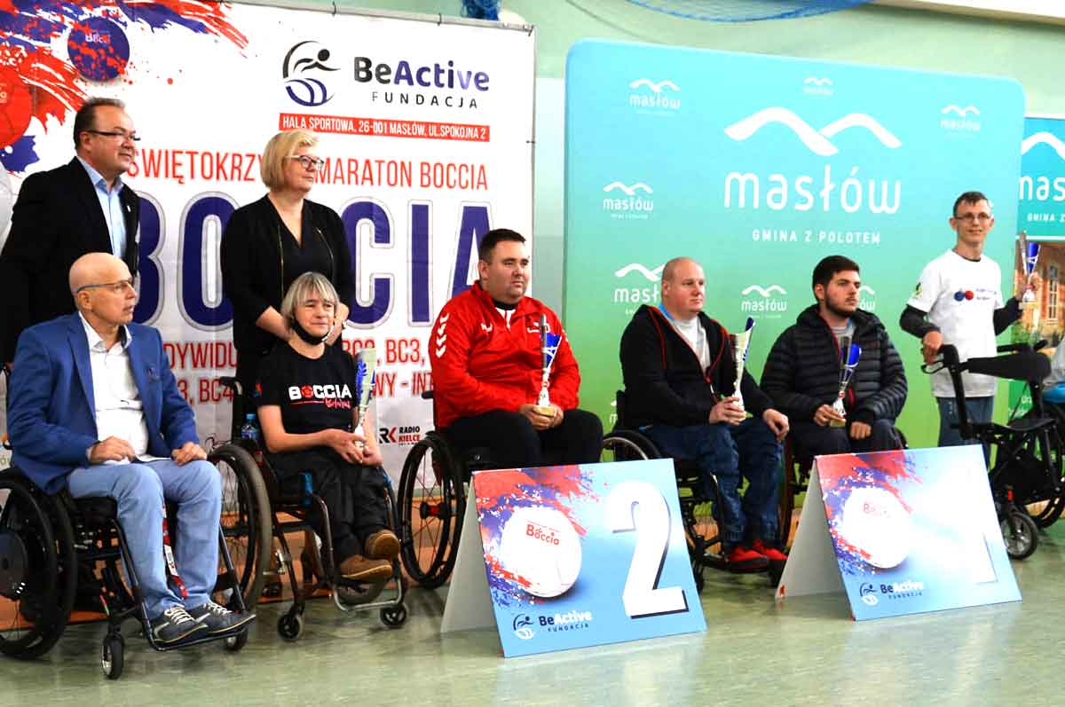 15.10.2021 r. Fundacja BeActive w ramach projektu dofinansowanego przez Zarząd Województwa Świętokrzyskiego oraz przy wsparciu Gminy Masłów oraz Boccia-Szkolenia-Janowski zorganizowała IV Świętokrzyski Maraton Bocci. Do hali sportowej w Masłowie przyjechało w tym roku 60 zawodników wraz z 30 asystentami sportowymi oraz opiekunami. Zmagania zawodników przebiegały w miłej i sportowej atmosferze. Rywalizacja przebiegała na wysokim poziomie a najlepszych w poszczególnych kategoriach udekorowano pucharami i medalami. Zawodnicy otrzymali też gadżety ufundowane przez sponsorów. Wszyscy uczestnicy cieszyli się zarówno jak ze sportowej rywalizacji jak i integracji oraz zapowiedzieli że z chęcią przyjadą na kolejną edycję Świętokrzyskiego Maratonu Bocci.